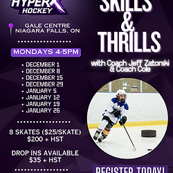 Skills and Thrills is a dynamic, high-tempo development program designed to enhance players’ confidence, creativity, and overall performance. Each session emphasizes improving puck control, quick hands, and other essential hockey skills through engaging, competitive drills that challenge players and promote consistent skill growth.